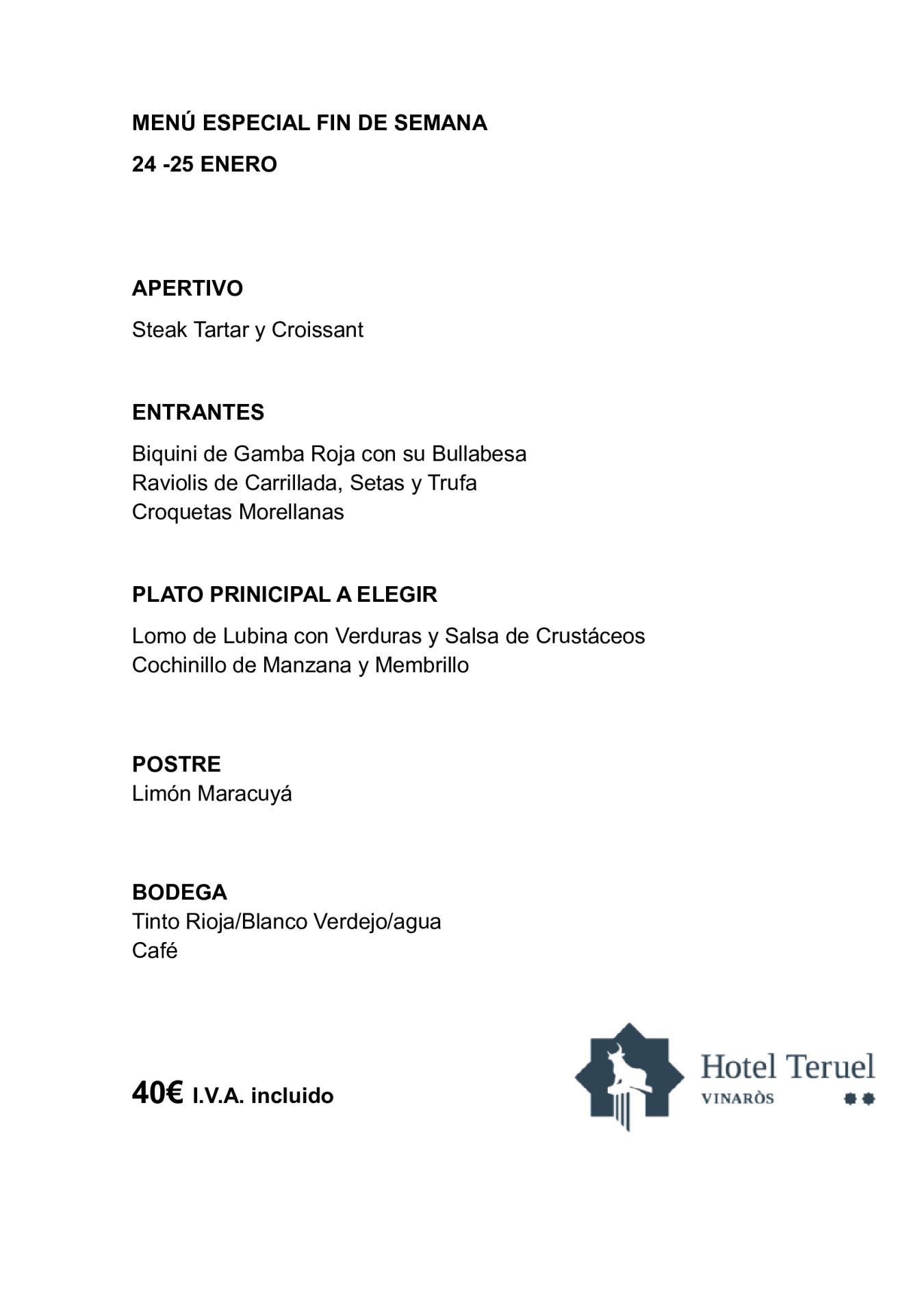 MENÚ ESPECIAL FIN DE SEMANA
